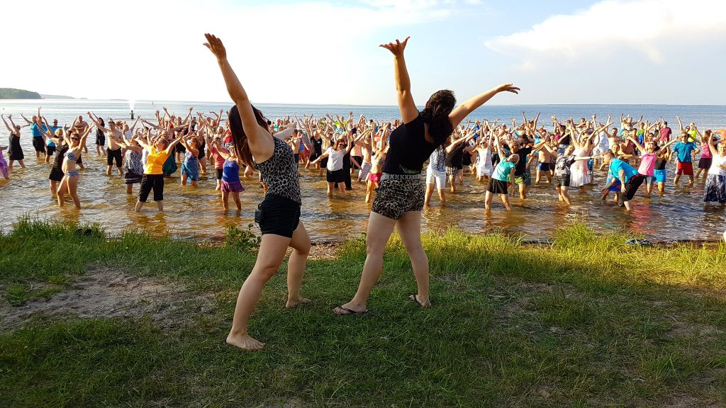 Kati tanssittaa taas järvessä! Tämä vesi-iloittelu on saavuttanut suuren suosion jo vuosikaudet, eikä kastumiselta voi välttyä. Ihana kesäisen päivän viilennys ja hyvän mielen tuulahdus a’la Valasrannan Tanssileiri! Perinteisesti mukana on siis säävaraus, mutta eipä hätää: järvitanssien tarkemmasta toteutusajankohdasta ilmoitellaan sitten leirin aikana. Tuuhan polskimaan!